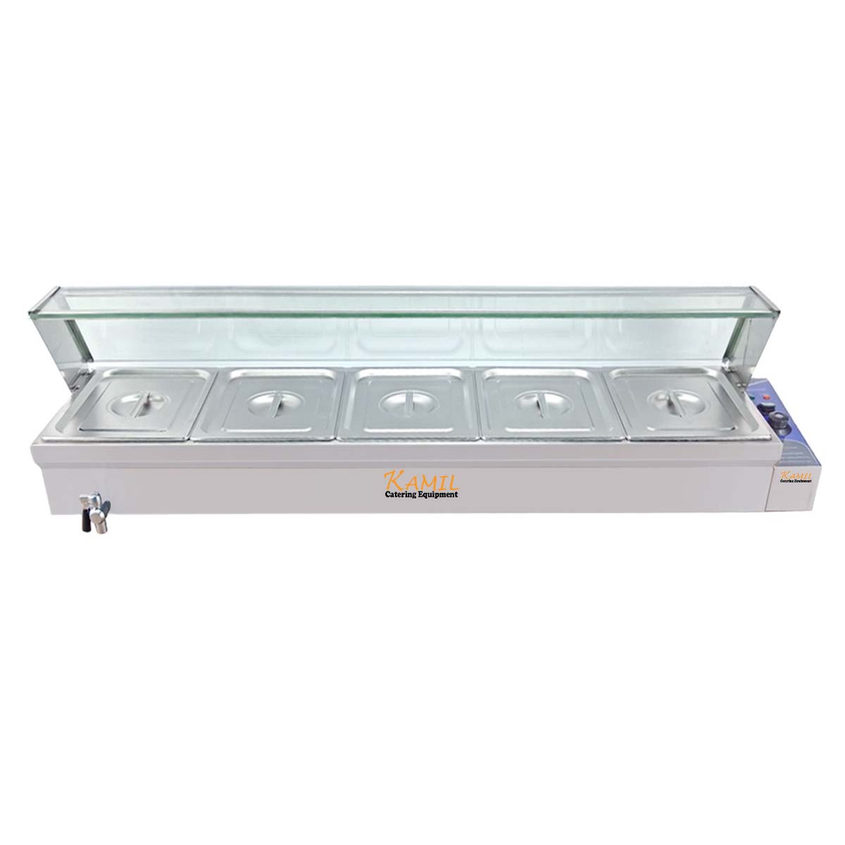 Electric Bain Marie 5 X 1/2 GN Pan Stainless Steel Countertop Food Warmer With Glass